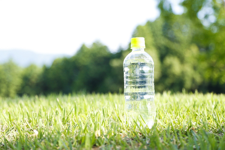 天然水は100%リサイクルペットボトル